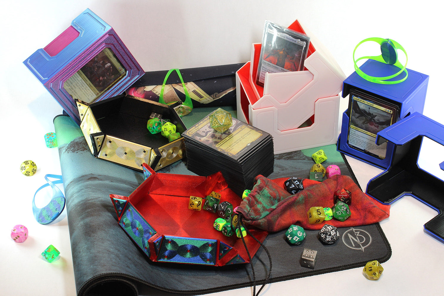 I create made to order custom commander deck boxes, dice trays, and mat roll wraps. Come check them out! I offer 66 unique color combinations so you are sure to create one to fit your gaming style.
